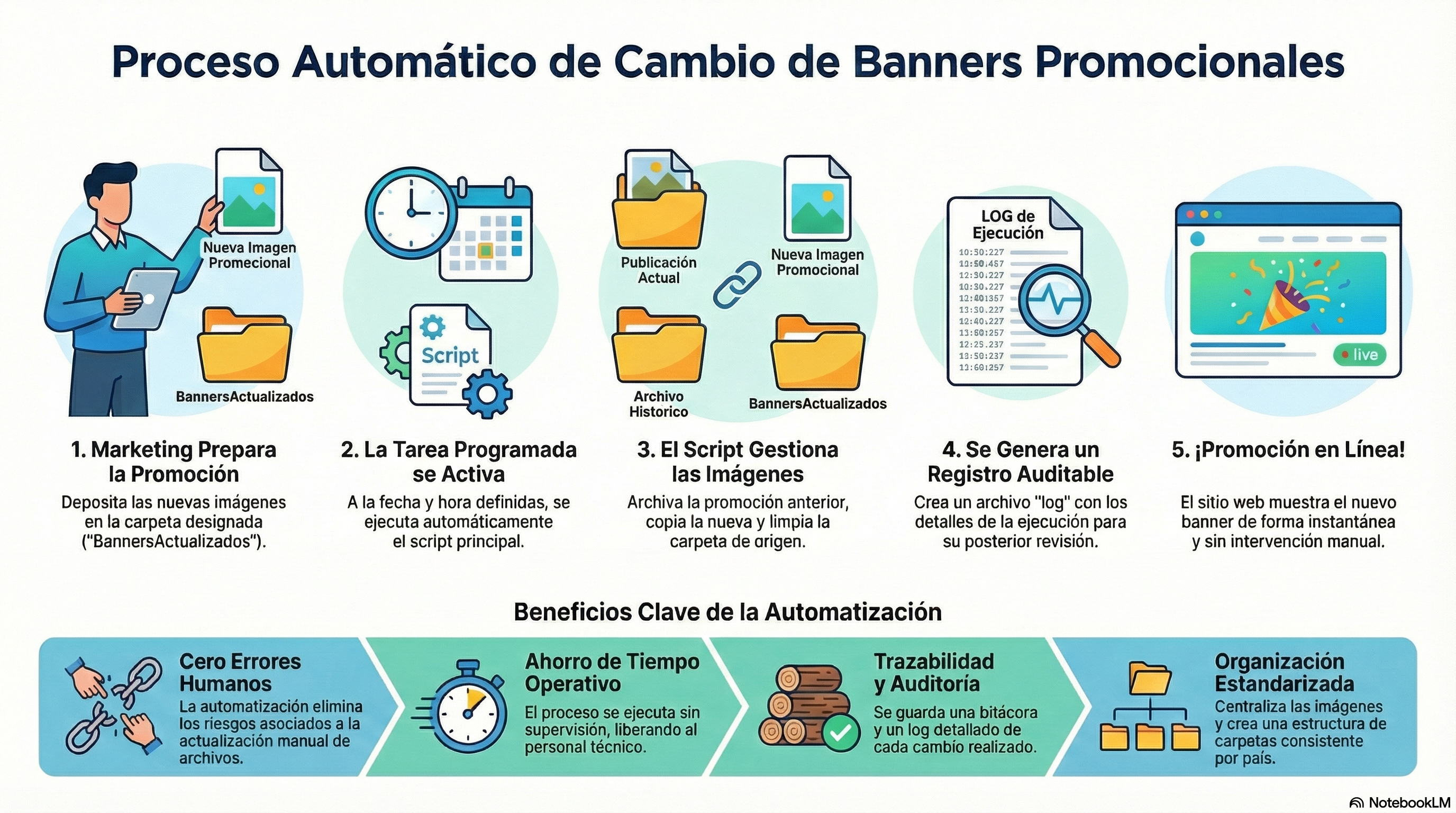 En esta sección encontrarás todas las mejoras implementadas mediante la automatización de procesos. Cada tarjeta ofrece accesos rápidos a documentación, videos y flujos.